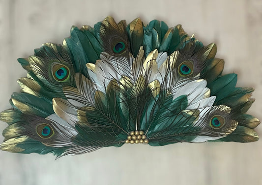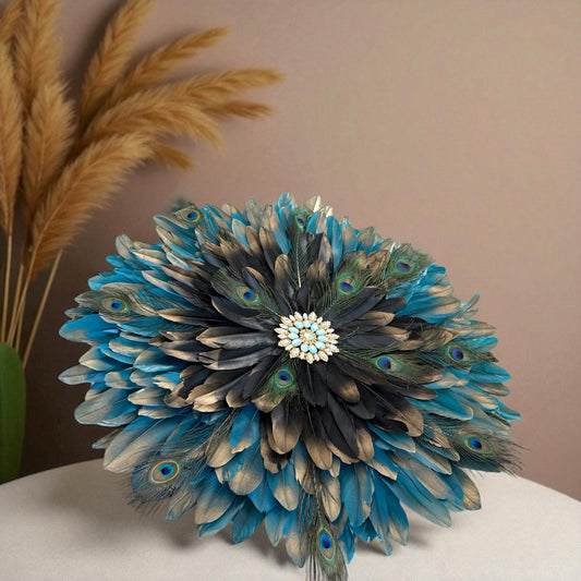 JujuHat « Élégance Paon » - Déco murale bohème chic en plumes naturelles et strass scintillants